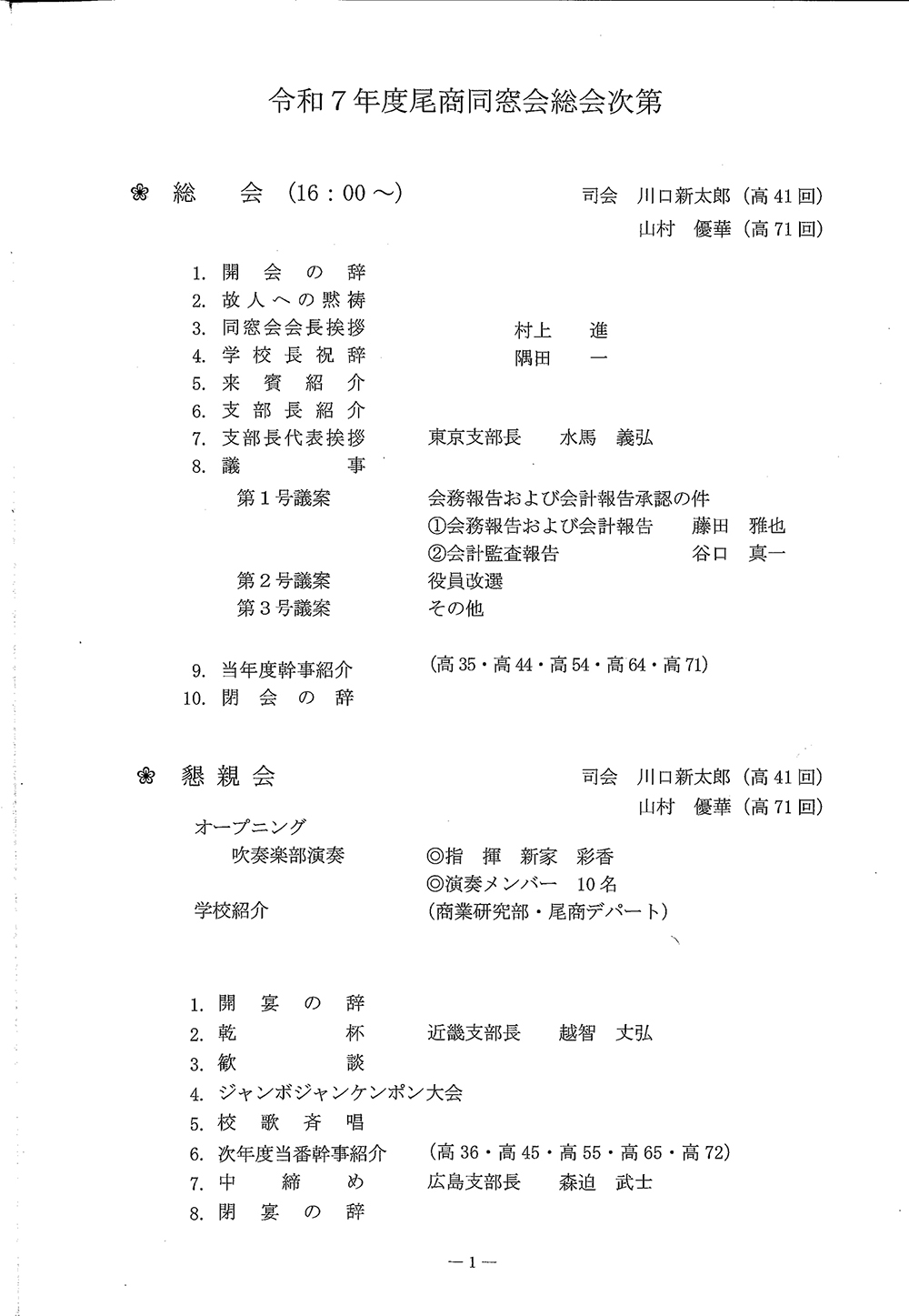 令和7年(2025)度 創立137周年 尾商同窓会総会